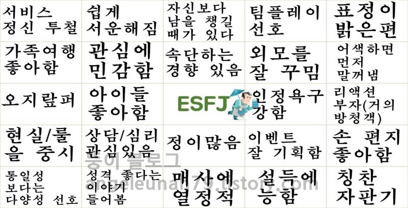 MBTI 유형중에서 ESFJ 유형의 특징에 대해서 알아보고자합니다.